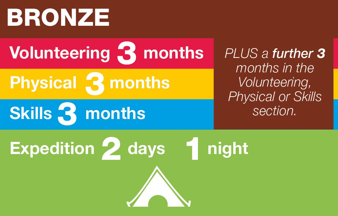 There are three levels of DofE programme which when successfully completed lead to a Bronze, Silver, or Gold Award.