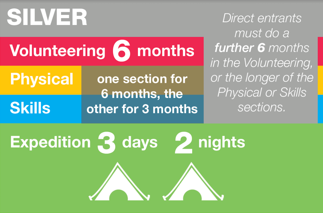 Skills, Volunteering, Physical, Expedition and for those working towards Gold, an additional residential section.
